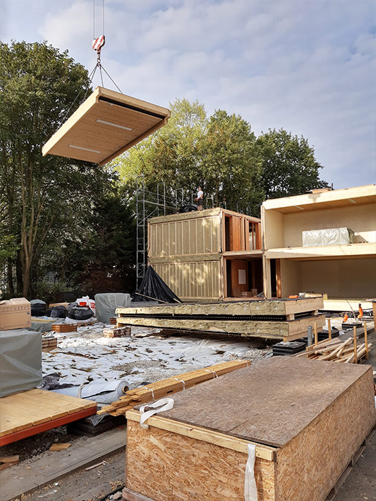 Vor einigen Jahren entbrannten in unserem Stadtteil Diskussionen darüber, ob man ein dortiges, in die Jahre gekommenes Schulgebäude nun saniert und „nur“ anbaut – oder besser direkt abreißt und komplett neu baut. In Unterschriftensammlungen und bei Meinungsbeiträgen von Eltern kamen immer wieder Befürchtungen und Ängste auf, dass ihre Kinder bei einer Schulsanierung jahrelang in schrecklichen Behelfscontainern und auf einer Baustelle mit gehörigem Baulärm unterrichtet werden müssten. Ökologische Überlegungen hinsichtlich Energieaufwand und grauer Energie und folglich auch unnötigen Ressourcenverbrauchs spielten in der Betrachtung hingegen keine Rolle. Was den Eltern damals fehlte, war ein Bild vor Augen, wie ein zeitlich begrenzter Behelfsbau daneben, rasch errichtet als leise Holzbaustelle, qualitativ hochwertige Lernräume bieten kann und so den Schülern Baulärm während der Schulsanierung erspart.
